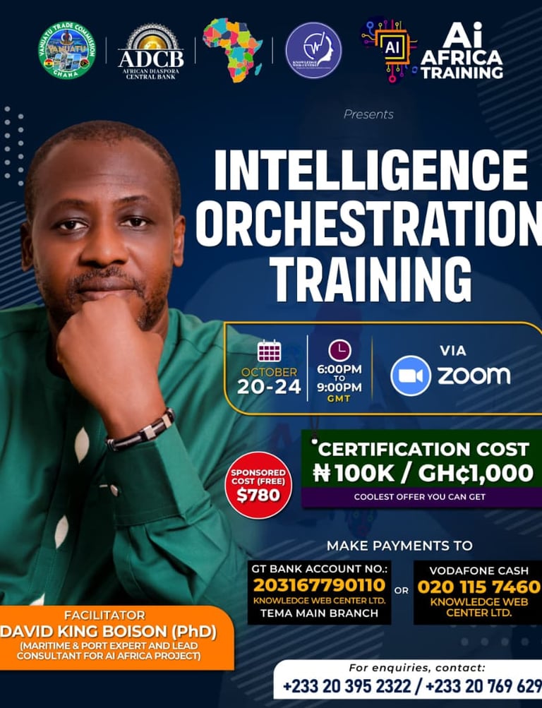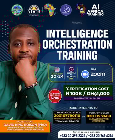 Facilitated by Dr. David King Boison, a distinguished maritime and port expert and lead consultant for the AiAfrica Project, this initiative is sponsored by the African Diaspora Central Bank in partnership with the Vanuatu Trade Commission–Ghana. The Knowledge Web Center serves as the lead consulting firm delivering expert training to ensure effective knowledge transfer and regional capacity building.