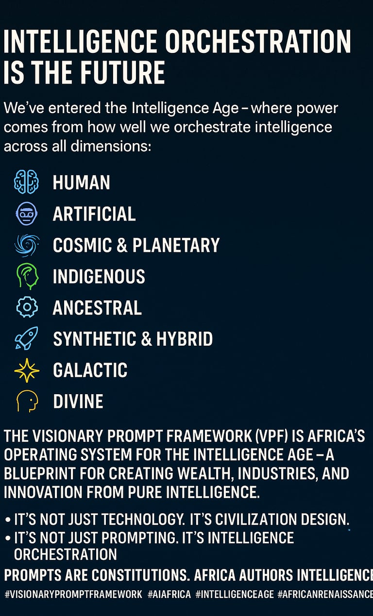 The Visionary Prompt Framework (VPF) is Africa’s Operating System for the Intelligence Age — a blueprint for creating wealth, industries, and innovation from pure intelligence.